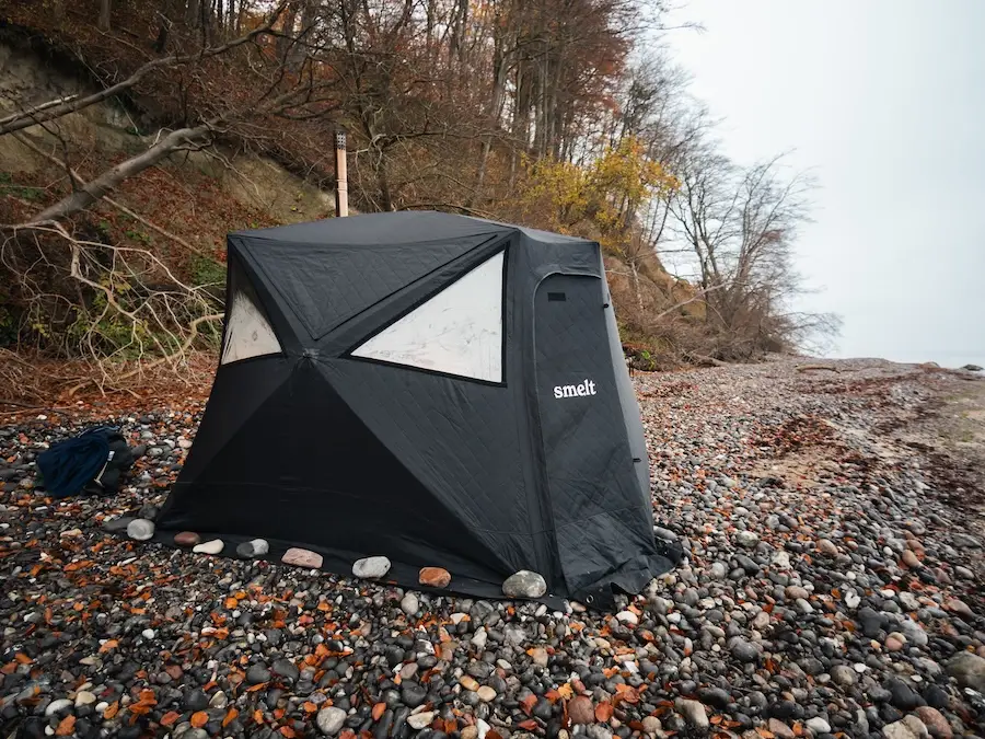 Det er herfra, fra Tejn, han har bygget Smelt op. Saunateltene kan nå op til 100 grader på en halv time, kræver ingen byggetilladelse og kan stilles op i haven eller tages med på eventyr.
