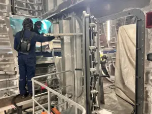 FÆRGERNE: En større gruppe svejsere fra både ind- og udland har kastet sig over arbejdet med den midlertidige reparation på