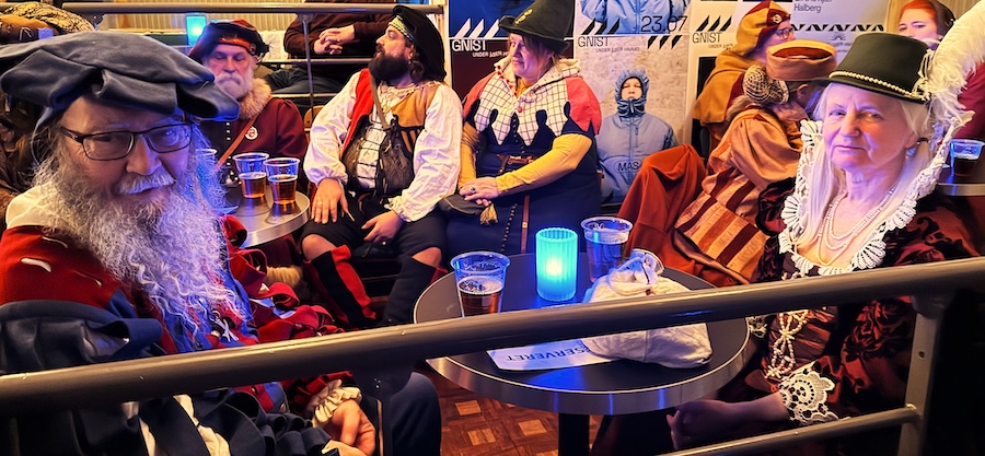 Allerede ved indgangen stod det klart, at dette ikke var en almindelig koncert. Frivillige i middelalderdragter tog imod publikum, og i baren blev der skænket mjød og serveret ægte Mjølner. Det var sanseligt, legende og gennemført – en kærlig hilsen til historien og til det fællesskab, der binder øen sammen.