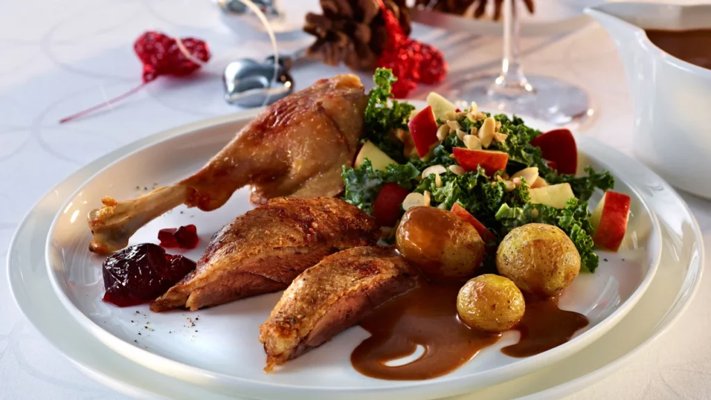 Hvor traditionen byder, at man spiser gåsesteg. De fleste vælger dog andesteg. Mortensaften, fordi dagen i morgen er Martins dag, opkaldt efter biskop Martin af Tours, der blev født i Ungarn i 320. Mere om det i morgen.