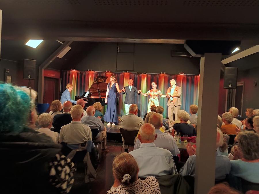 Så det blev til opera i salen, men alligevel en fantastisk oplevelse for den helt udsolgte sal. De fire sangere Signe Asmussen, Josephine Andersson, Niels Jørgen Riis og Guido Paevatula med Leif Greibe ved flyglet leverede en aften fyldt med skøn sang, pudsige indfald, klovnerier og alvor og publikum skiftevis grinte, klukkede, nød musikken og klappede.